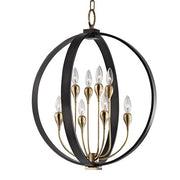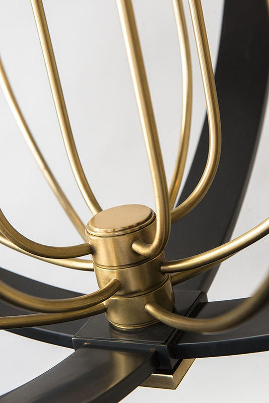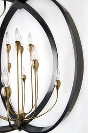 This round piece offers our take on a perennial favorite. Arms like crocuses support candelabra bulbs, pertly poised as if reaching to the sun from within their circular metal frame. The contrast between Old Bronze and Aged Brass in our AOB versions adds further dimension to the piece.