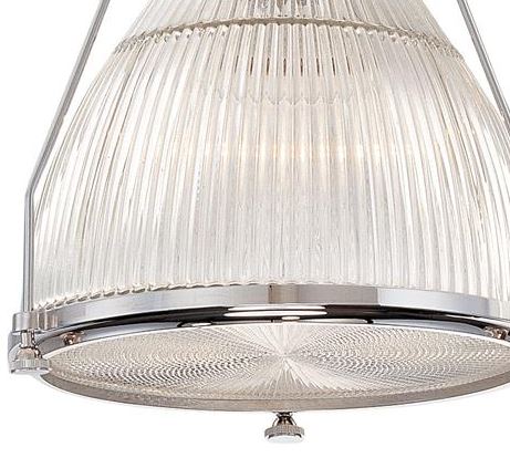 Our Haverhill family offers the Hudson Valley twist on an industrial icon, produced in some form by numerous manufacturers. We set ours apart with numerous details, such as the metal-rimmed Fresnel lens glass diffuser which focuses the light for better task lighting. Other details include the knurled thumbscrews at the end of the slender arms securing the vertically embossed shade in place, displaying our commitment to authenticity.