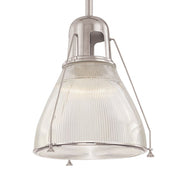 Our Haverhill family offers the Hudson Valley twist on an industrial icon, produced in some form by numerous manufacturers. We set ours apart with numerous details, such as the metal-rimmed Fresnel lens glass diffuser which focuses the light for better task lighting. Other details include the knurled thumbscrews at the end of the slender arms securing the vertically embossed shade in place, displaying our commitment to authenticity.