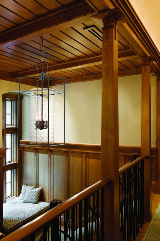 Our textural Esopus family reinvigorates Craftsman design with a stunning twist. Within cast metal frames, we’ve suspended decorative glasswork—cut and polished with a pattern of concave circles for a lively op-art effect. This glass column creates a wonderful diffusion effect, as exposed-filament bulbs shine through. The hard edges of the metal square contrast with the round curve of the glass. In Old Bronze finish, Esopus evokes the Mission Arts era, while Polished Nickel gives it a contemporary feel.