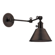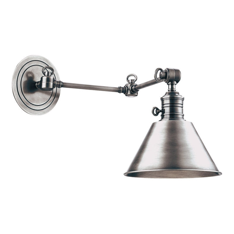 Utility and luxury merge in our Garden City family. Hand-rubbed finishes that continue inside the shade make these adjustable sconces very attractive in their all-metal versions. Metal-rimmed white glass shades allow more light diffusion in another, equally appealing option. The former enhances its function as a task light; the latter amplifies its accent potential. Machined details such as the rings on the cast-metal backplate and the turned socket holder give Garden City a vintage industrial feel. We wire Garden City with an on/off switch, making it ideal for a bedside reading lamp or as a replacement fixture in historic homes that lack a separate wall switch.