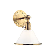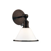 Utility and luxury merge in our Garden City family. Hand-rubbed finishes that continue inside the shade make these adjustable sconces very attractive in their all-metal versions. Metal-rimmed white glass shades allow more light diffusion in another, equally appealing option. The former enhances its function as a task light; the latter amplifies its accent potential. Machined details such as the rings on the cast-metal backplate and the turned socket holder give Garden City a vintage industrial feel. We wire Garden City with an on/off switch, making it ideal for a bedside reading lamp or as a replacement fixture in historic homes that lack a separate wall switch.
