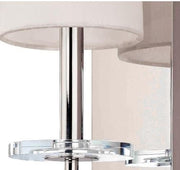 Mixing crystal discs into a metal transitional piece with verve, Chelsea adds a dash of the unexpected. These crystal discs appear as ironic bobeches on otherwise minimal candles and in a ridged stack along the central column, just visible above the shades. The chandelier’s body also features subtle fluting along its thicker section.There’s more than meets the eye at first glance to Chelsea, though she won’t be shouting for your attention.
