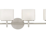Smooth minimalism makes a soothing impression in the Trinity bath collection. Glowing oval shades of matte-finished opal glass mount to clean cast metal bars. Sharp-lined, flat oval backplates and matching shade bases complete the fresh motif.