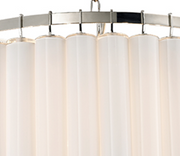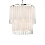 Each glass tube in our Tyrell family is purposely imperfect, frosted opal toward the top before raggedly giving way to perfect clarity by the base. Outer gloss gives them sheen, making for a mysterious and alluring diffusion effect as light comes blushing through from candelabra bulbs set perpendicular to each layer of glass tubes. Tyrell adds a 21st-century touch to a Modernist classic.
