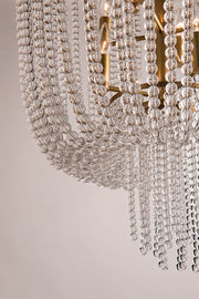 Bring back the elegance and the glamour of a Jazz Age ballroom with this opulent chandelier. Strings of crystal beads like pearl necklaces cascade all around the light source. Generous amounts of crystal pour down in waterfall-like profusion. With streamlined simplicity and classic elegance, Royalton adds a dash of panache to your space.