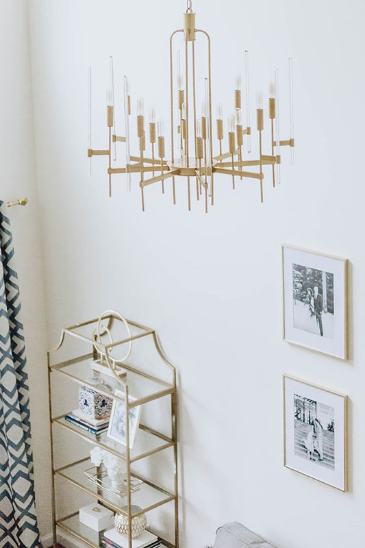 Italian mid-century lighting was glamorous and inventive, mixing materials, metals, and muses with verve. Bari pays homage to this period of Italian lighting design with its multi-tiered composition of polished glass rods, perpendicular brass arms, and thick lamp holders.