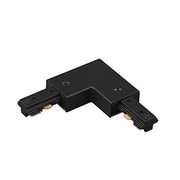 J system single circuit L connector used to join two track sections to make a power feedable 90 degree angle. Available in left-hand or right-hand polarity.