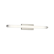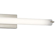 This LED linear wall fixture is a versatile piece. The Brushed Nickel finish and a white acrylic diffuser create a crisp look and bright, clean ambience. Horizontal or vertical mounting options add to the versatility of this fixture.