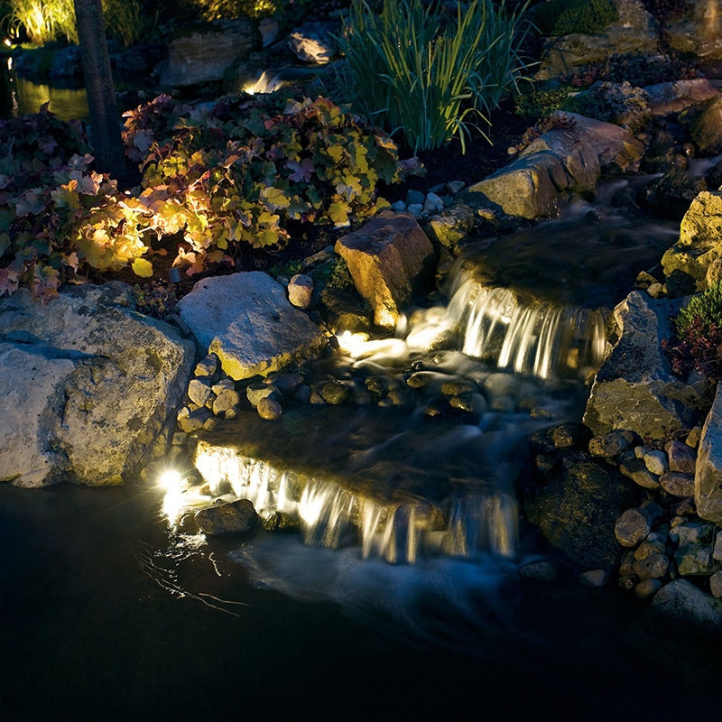 The VLO 12V LED Underwater Accent with Lumen Effects System allows you to switch between three lumen outputs: 100, 200 or 400 easily with the use of the Magnetic Key, which can be used to adjust the fixture underwater. Equipped with a removable and adjustable cowl and mounting bracket, the VLO Underwater accent light is perfect for use in ponds, fountains, water gardens, docks, streams, and is safe for use with aquatic wildlife and virtually any water additives.