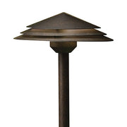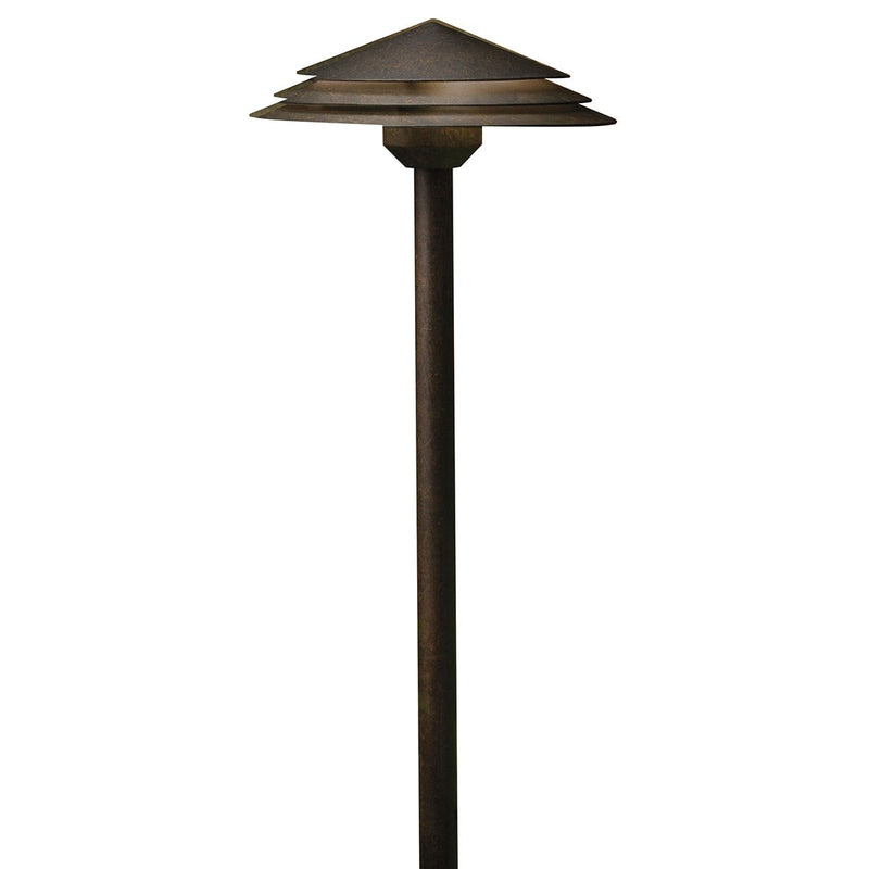 Cascading round tiers on this 2700K warm white LED path light in Aged Bronze add a dynamic lighting effect to your walk or garden.