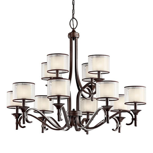 This 12 light, 2 tier chandelier from the Lacey Collection offers a beautiful contrast, melding the charm of Olde World style with clean modern-day materials.