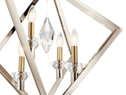 Glamorous in shape and style, the Layan 4 light pendant is a gem that lights up a space. The Polished Nickel and Classic Bronze finish combination shine with style, while the decorative crystal pendant sparkles.