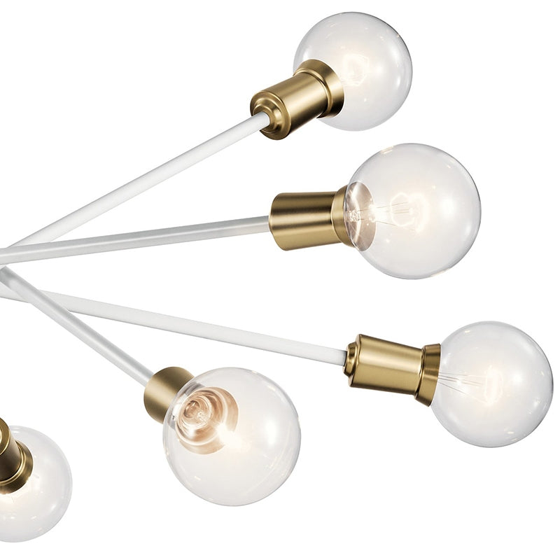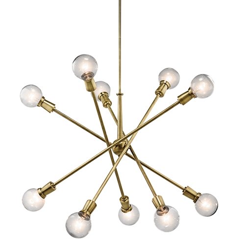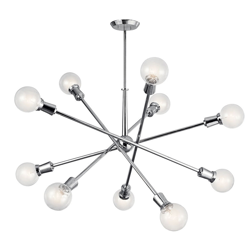 This Mid-Century 10 light Large chandelier from the Armstrong collection features a "sputnik" design with adjustable arms allowing you to customize the light for just the right look.