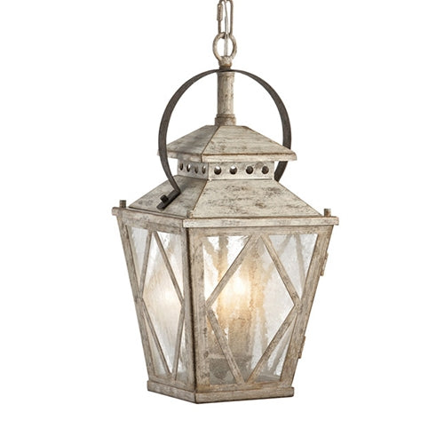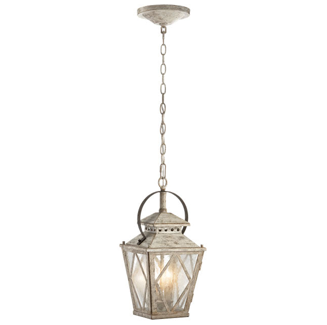 Hayman Bay 18" 2 light Pendant features a rustic coastal look with its Distressed Antique White finish and clear seeded glass.