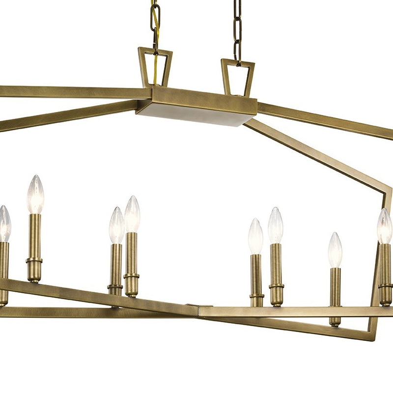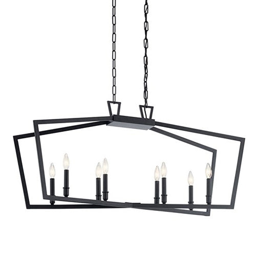 The open cage style of Abbotswell linear chandelier makes maximum impact with minimal lines. Intersecting pentagons create a look that works in a variety of decors: updated traditional, transitional or modern farmhouse.