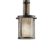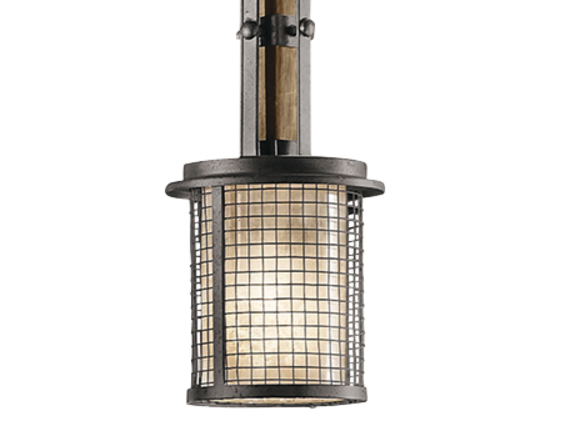 The dressed up rustic styling of this 1 light mini pendant from the Ahrendale collection opens new possibilities sure to enhance your décor. Open Iron Anvil mesh surrounds and protects the Vetro Mica shades which in turn cast a satisfying and comforting illumination in your home.