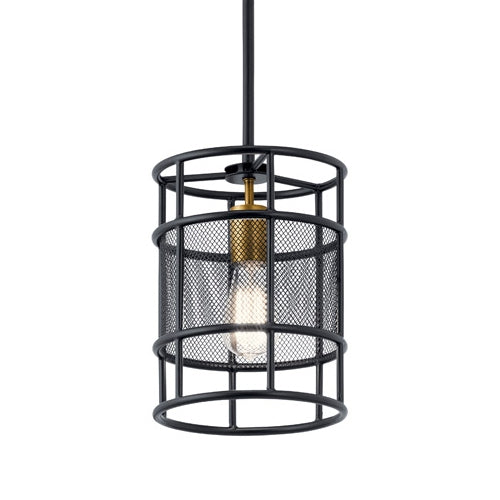 Two on-trend finishes deliver sleek industrial-era style on this Piston 1 light mini pendant. Natural Brass accents add the shine, while a black mesh cage forms the structure.