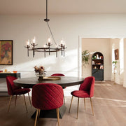 This Alton 8-light chandelier combines industrial-era detailing and soft modern style. While its "nuts & bolt" hardware accents create a look that works in both traditional or modern décors.