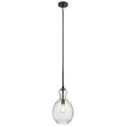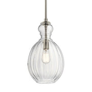 Inspired by antique, vintage perfume bottles, this 1 light Riviera pendant in Brushed Nickel or Olde Bronze is the perfect touch of retro design. Use alone or in clusters to make a decorative statement. The clear fluted glass removes easily for cleaning.