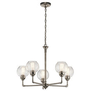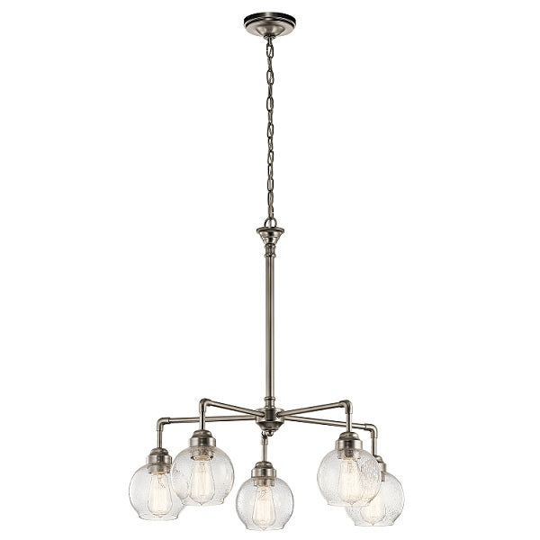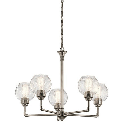This Niles' Antique Pewter 5 light chandelier's globe style is reminiscent of fixtures found in historic metropolitan buildings, icons of the industrial era. Niles modernizes the look with clean lines for a look that works in any home.