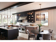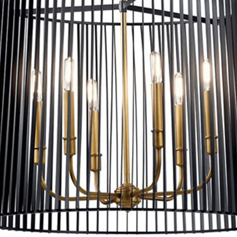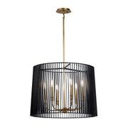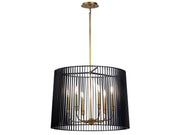 The Natural Brass finish on this Linara 6 light pendant, is like jewelry to the Matte Black metal slatted shade. A refreshing twist on contemporary and midcentury modern décor.