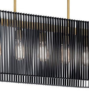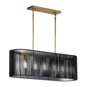The Natural Brass finish on this Linara 5 light linear chandelier, is like jewelry to the Matte Black metal slatted shade. A refreshing twist on contemporary and midcentury modern décor.