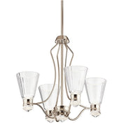 Inspired by vintage glass decanters found in Paris flea markets. The Kayva™ LED chandelier radiates French elegance by combining graceful arms with clear faceted glass and Polished Nickel finish for an updated traditional style.