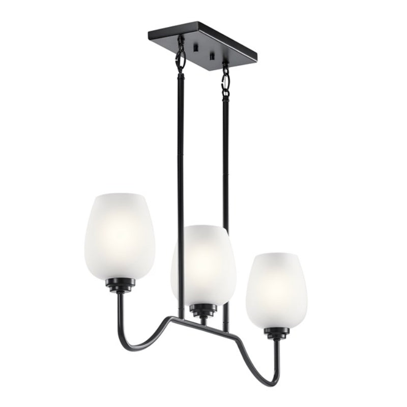 Inspired by the elegant and sleek design of a wine goblet, the 3-light linear chandelier from the Valserrano™ collection conveys grace and beauty with its sweeping finishes and Satin Etched glass. The Valserrano™ linear chandelier pairs traditional elements with a simple design to create a clean, classic look.
