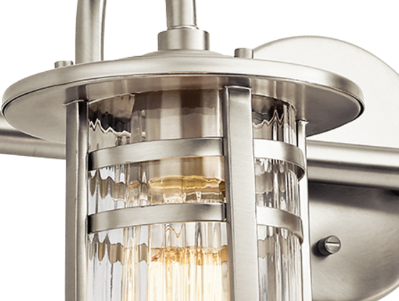 This 2 light bath light from the Nautical Inspired Caparros Collection brings a touch of the seaside to your home. The cool Brushed Nickel finish and clear ribbed glass unite to create a delightfully transitional style that is perfect for any decor.