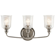 This 3 light bath light from the Waverly collection feels like a classic antique find. Versatile enough to work with traditional, transitional or even modern décor, the clear seeded glass, coupled with the Classic Pewter finish, enhance the vintage feel.