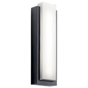This large LED outdoor wall light from the Dahlia collection features a sophisticated, crisp edge. The interior of its white, fish tank glass produces a clean light.