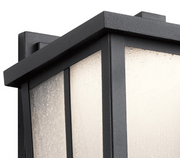 This large LED wall lantern from the Amber Valley outdoor collection features a simple, clean minimalist design in Textured Black with Etched Seeded glass. A perfect addition to any home's exterior.