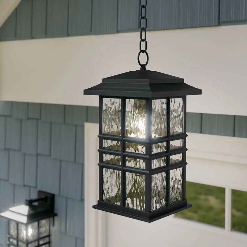 Inspired by classic craftsman architecture, This Beacon Square 1 light outdoor pendant’s clean lines deliver a transitional and versatile style. Crafted from Kichler’s Climates materials, each fixture is designed to withstand harsh outdoor elements, like saltwater spray and UV rays. The clear, hammered glass simulates the look of water, enhancing the overall style, while still letting the light shine through.