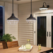 The caged design of the Pier 12 inch 1 light outdoor convertible pendant/flush mount in Gloss Grey, White offers the vintage outdoorsy look, while the bright white interior enhances and reflects the light for essential nighttime illumination.