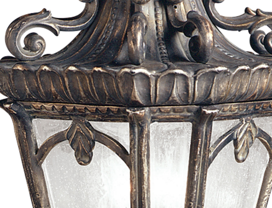 With its heavy textures, dark tones and fine attention to detail, this 3 light hanging outdoor pendant from the Tournai collection stands out from other outdoor fixtures.