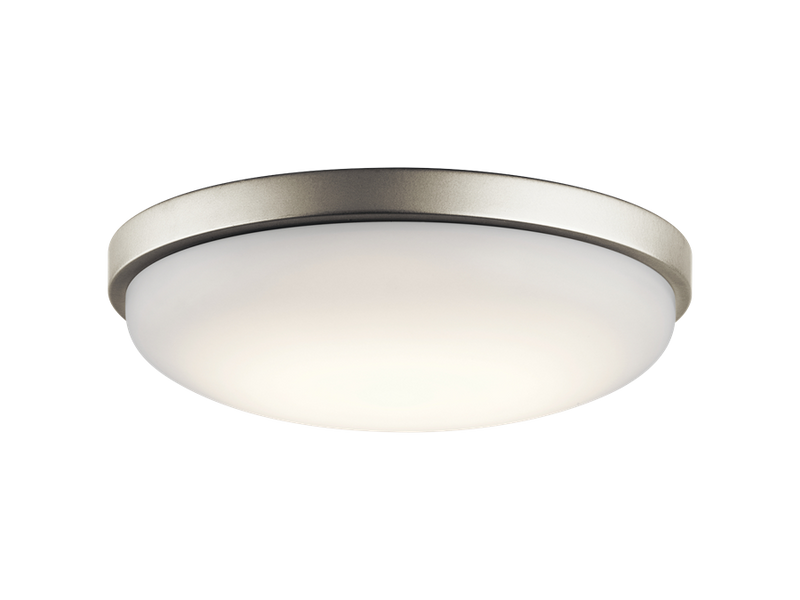 Add this simple LED flush mount ceiling light for additional atmosphere. It features Brushed Nickel finish with a white acrylic diffuser.