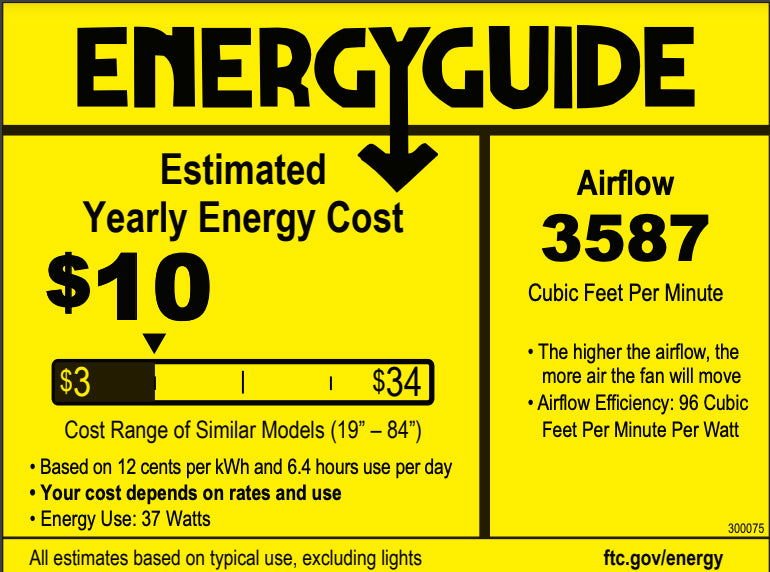 - Airflow Efficiency: 87 cubic ft per minute per watt