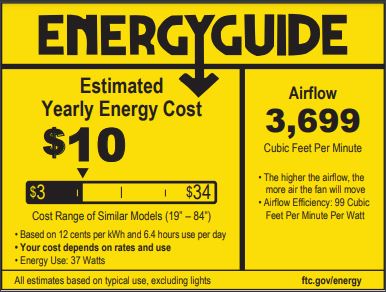- Airflow Efficiency: 86 cubic ft per minute per watt