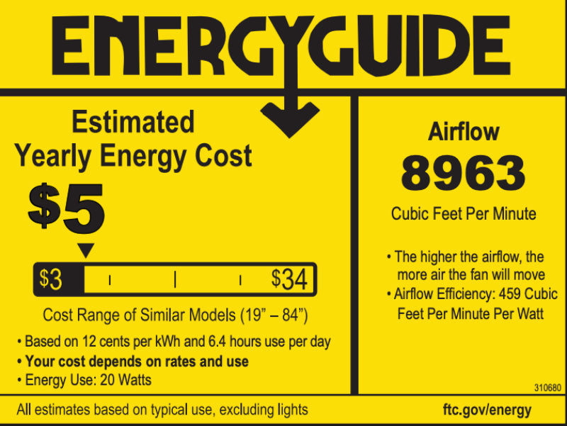 - Airflow Efficiency: 400 cubic ft per minute per watt
