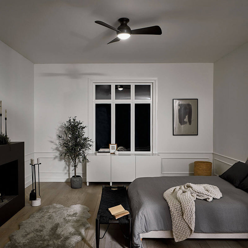 The Sola collection which can be used in wet locations, features integrated LED lighting and flush mount installation. The globe inspired motor housing shape brings delightful style to any space. A metal fixture cap is included for non light use installations.