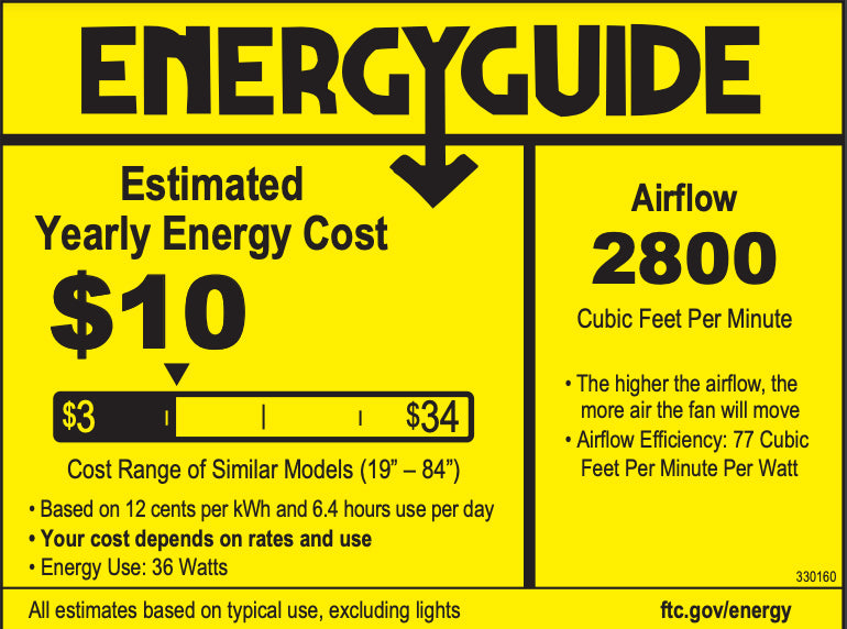 - Airflow Efficiency: 76 cubic ft per minute per watt