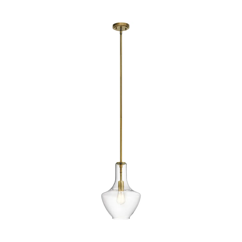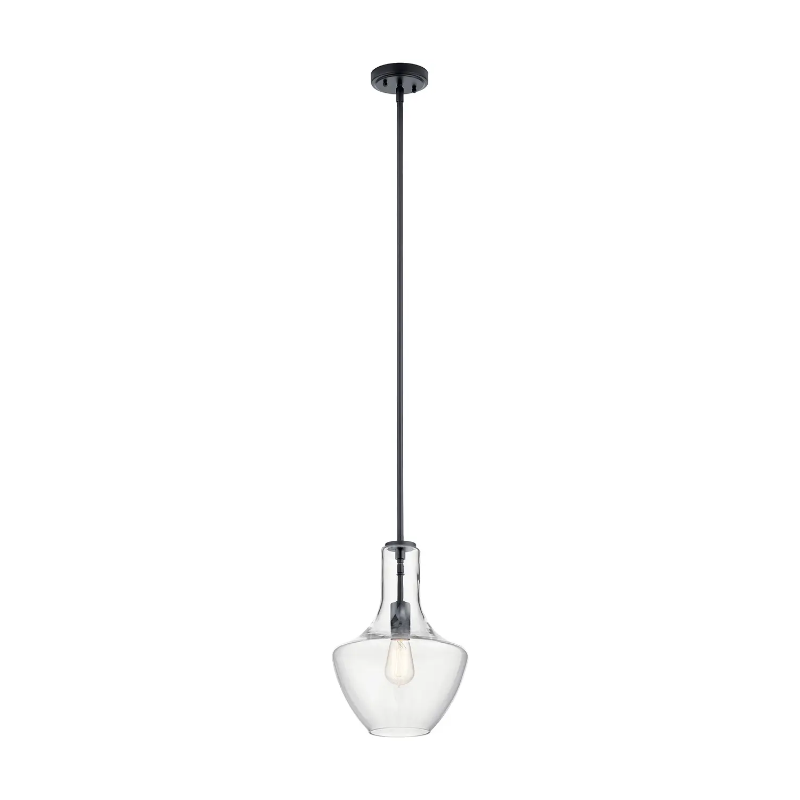 A modern style with minimal detailing, the Everly 1-light pendant easily elevates the style of soft modern environments. This elegant pendant offers a soft, curvilinear form and contemporary, clear glass silhouette that provides ambient lighting to the entire room. As beautiful as it is versatile, adjust the hanging height to meet the needs of your space.