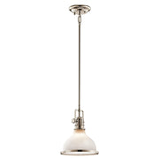 This 1 light mini pendant from the Hatteras Bay™ collection is a charming accent piece that will complement any space. Featuring a rich, Olde Bronze / Polished Nickel finish and a Satin Etched White glass bowl with an inside etched clear Fresnel lens, this design is sure to leave an impression.