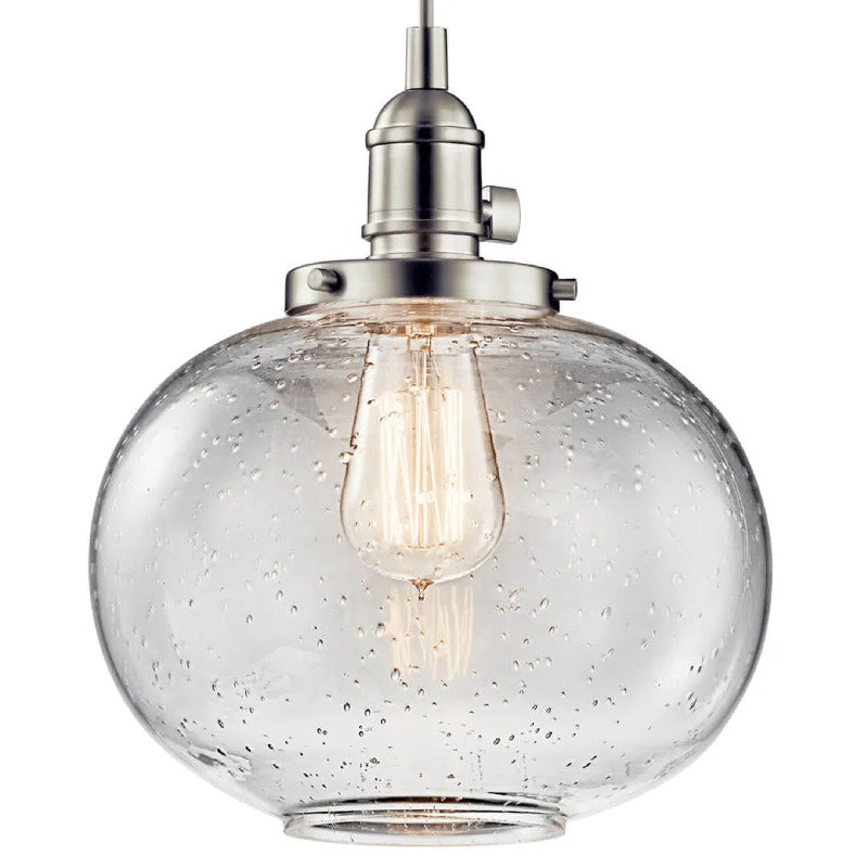 Offering convenience and ease in coordinating with other lighting options, the Avery 1 light goblet mini pendant is truly as versatile as it is beautiful. Its clear seeded glass provides a beautiful, ambient lighting to the entire room and is also easy to remove--for ease of cleaning and replacement.