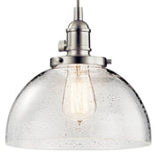 Offering convenience and ease in coordinating with other lighting options, the Avery 1 light goblet mini pendant is truly as versatile as it is beautiful. Its clear seeded glass provides a beautiful, ambient lighting to the entire room and is also easy to remove--for ease of cleaning and replacement.