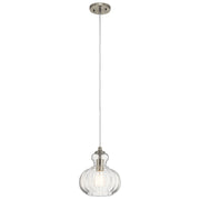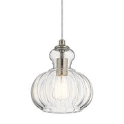 Inspired by antique, vintage perfume bottles, Riviera's 1-light mini pendant in Brushed Nickel is the perfect touch of retro design. The fluted glass removes easily for cleaning.