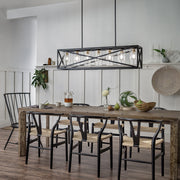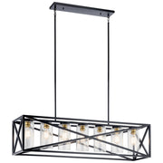 Inspired by vintage industrial shipping crates, the 7-light linear chandelier from the Moorgate™ collection features an oversized X pattern in a rich Bronze and Brass finish combination.