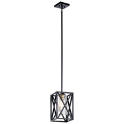 Inspired by vintage industrial shipping crates, the 1-light mini pendant from the Moorgate™ collection features an oversized X pattern in a rich Bronze and Brass finish combination.