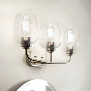 The Valserrano 24" 3 light vanity light features wine goblet shaped clear seeded glass shades with a clean design.